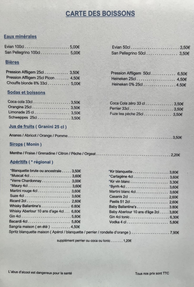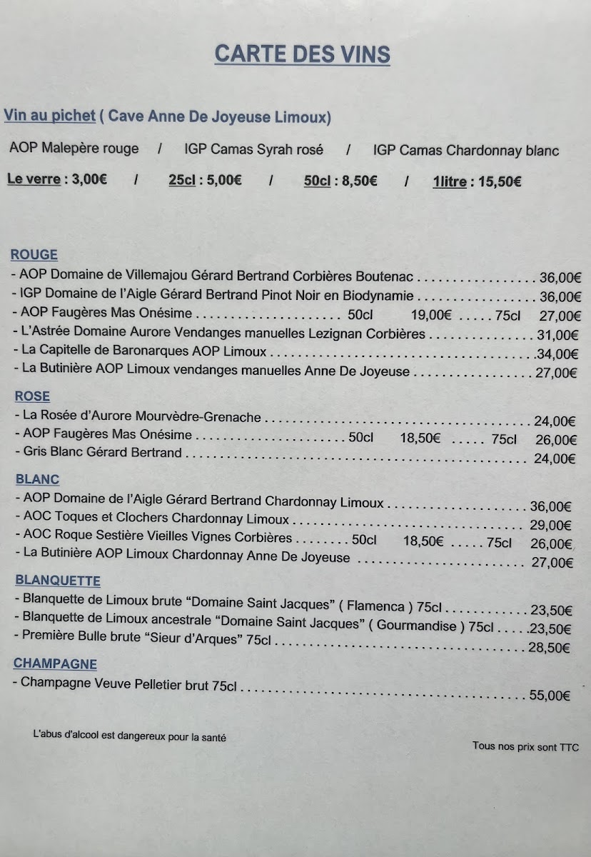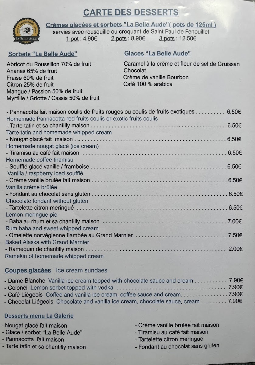 Welcome to La Galerie, a charming restaurant nestled in the heart of Quillan, France. With a menu that boasts both a well-curated selection of dishes and an enticing a la carte option, there's something to satisfy every palate. Priced fairly at 32€ for the set menu and 40€ for a la carte, the culinary offerings are rich in flavor and artistry. Guests have raved about the stunning steak with pepper sauce and the exquisite prawns and scallops, leaving a lasting impression with each bite. La Galerie’s atmosphere is inviting and relaxed, making it a perfect spot for outdoor dining, especially during the warm summer months. Attentive service adds to the experience, with staff dedicated to making your visit enjoyable. Given its rising popularity, reservations are highly recommended. Whether you seek delightful cuisine or a humorous chat with the owner, La Galerie promises a memorable meal in a cozy setting.
